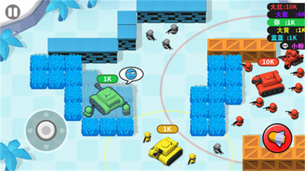 枪炮奇兵小游戏是一款精致的休闲益智游戏,它将为你带来惊险刺激的决战体验,在这个游戏中,你将扮演一个指挥者,带着你的坦克和小兵与其他队伍进行激烈的战斗。玩家在游戏中可以选择自己将要代表的队伍颜色,不同的队伍颜色会有不同的特色与技能。