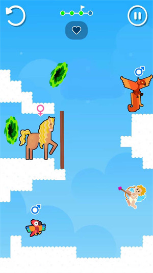 【生物制作】制造出各种奇妙的生物,玩家只需要使用自己的爱之箭射中不同的物种,就能让它们产生爱意并创造出全新的生物。