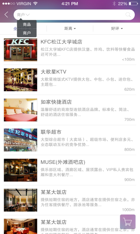 3.用户可以查看到附近上商户、商品,可以对商品进行购买。