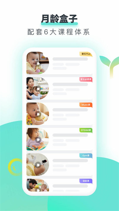 3、在平台上面还可以看到每个月份大的孩子需要学习的课程,早期就可以开发孩子的思想。