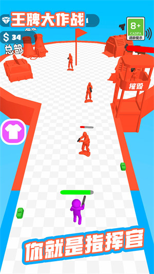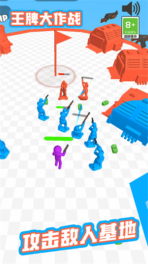 王牌大作战是一款富有策略性和刺激性的塔防主题游戏,玩家在游戏中扮演指挥官的角色,可以自由选择自己喜欢的颜色和兵团类型,与其他玩家进行对抗来达到迅速占领敌方基地的目标。
