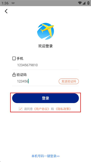 3、勾选请同意用户协议和隐私政策的选框,点击登录按钮,提交登录信息完成整个登录流程。