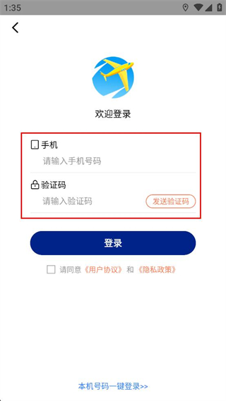 2、进入欢迎登录页面,在手机栏输入手机号码,在验证码栏输入对应验证码,完成登录信息填写操作。