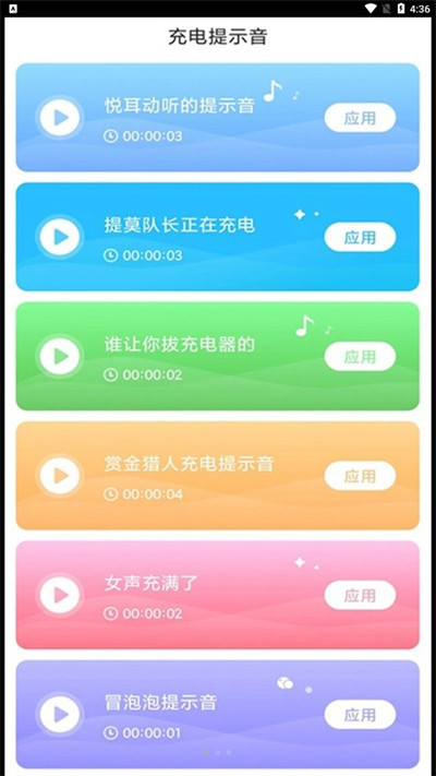 1、软件上面能看到各种类型的充电提示音,根据自己的选择最喜欢的一款音乐。