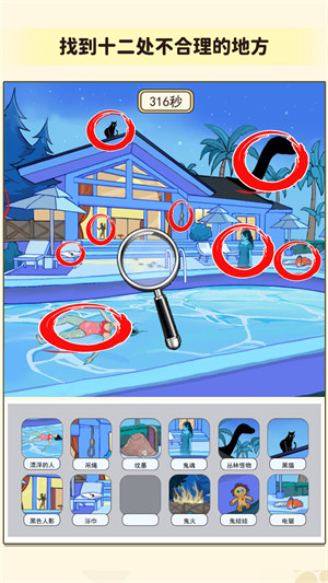 找出不合理合集是一款细腻可爱的休闲益智游戏,让玩家在游戏中享受探索的乐趣,并且感受到侦探的快感。游戏除了画面精美、操作流畅外,还有丰富的任务系统和全新的场景彩蛋,让玩家可以在游戏中一边寻找线索,一边领略美妙的世界。