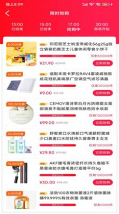 3、软件上面有显示抢购的活动,在固定的时间只有限量的商品让你购买。