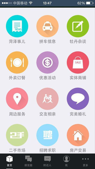 3.拼车信息、牡丹杂谈、外卖订餐、二手市场、婚礼婚庆、招聘求职、房产交易、车市行情、同城互动、论坛互动、交友相亲、便民服务等一系列服务。
