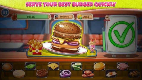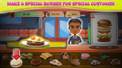 -玩家可以通过提高自己的厨艺水平和最新鲜的食材,制作出更加诱人的汉堡来吸引顾客;