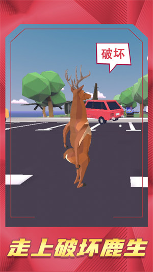 爱心萌宠手游是一款以动物破坏为主题的游戏,玩家将在游戏中扮演一个非常可爱的鹿,并且能够随意伸缩脖子和利用鹿角做利器。在游戏里面,你需要肆意地破坏城市地标和建筑物,体验一番“毁天灭地”的畅快感觉。