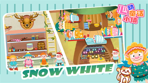 - 精美细致的画质,在童话场景下展现出大量的细节,从场景中的花草树木,到角色的表情、装饰品,以及各种小道具,都呈现出高度还原的效果。