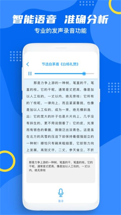 1、软件上面能看到一些专业的普通话语音,可以多次练习和阅读。