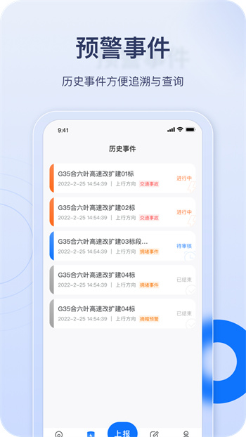 金鹰卫士APP是一款可以线上进行高速公路涉路施工安全管控的平台,可以方便更快速的管理项目工程施工和人员在线管理服务,可以迅速的了解现场的状况,查看历史事件通知信息,了解调度现场人员是否安全。