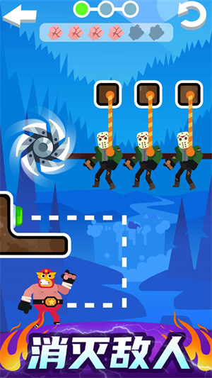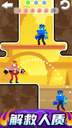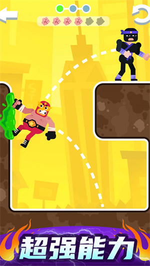 - 需要控制超级格斗战士,通过图像、翻滚和摔跤的方式将他扔向屏幕上的所有敌人,以击垮它们并过关,为下一个更具挑战性和兴奋的关卡做好准备。