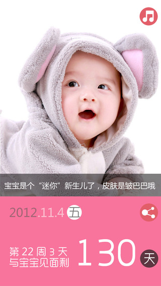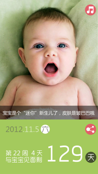 宝宝来了ios是一款最火的有关怀孕的软件。在这里用户可以一键设置宝宝到来的日期,随时随地都可以了解到自己与宝宝还有多久可以见面,每天都会为用户展现出一张萌照,让孕妇每天都有好心情。用户也可在里面享受到胎教音乐,让宝宝与妈妈一起健康的成长。赶快下载吧!