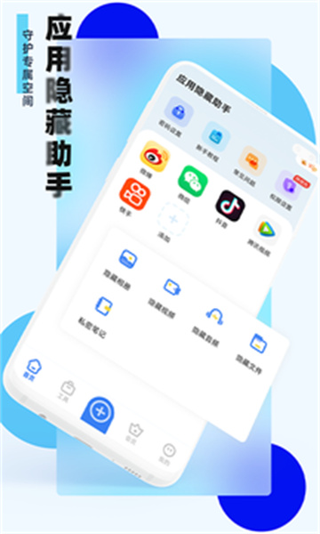 应用隐藏助手最新版下载安装可是一款可以帮助用户们安全的保护重要内容的工具,内置强大的安全隐藏工具,支持应用图标、名称隐藏,通过加密的方式才能够打开操作,是一个非常实用的隐私保护工具,不用担心隐私问题。