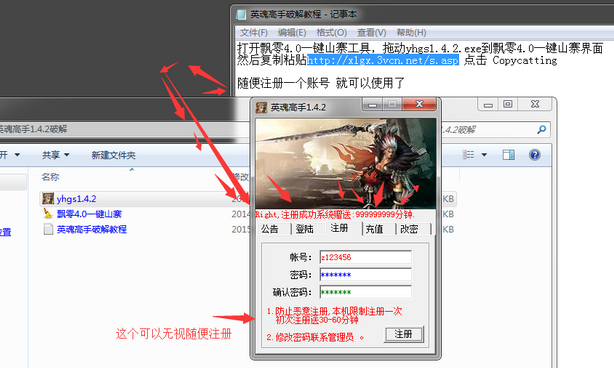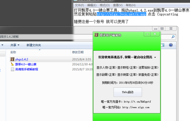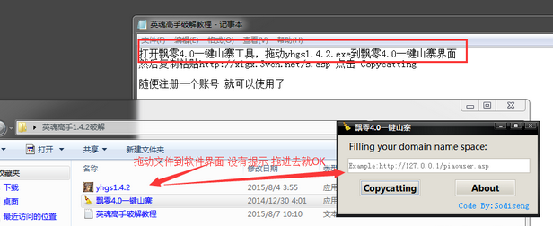 打开飘零4.0一键山寨工具,拖动yhgs1.4.2.exe到飘零4.0一键山寨界面