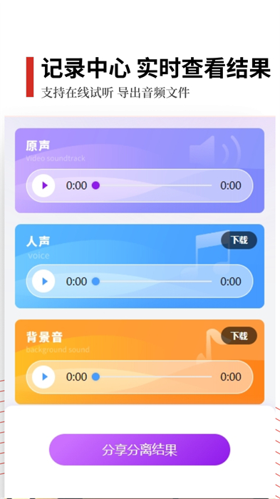 声音分离助手安卓版是一款可以让用户们对于音频内容剪辑提供更好服务帮助的应用,在下可以轻松的处理手机声音处理,方便用户们可以自由的更改音频的格式转换,打造一个快速人声和背景音乐得到完美分离。
