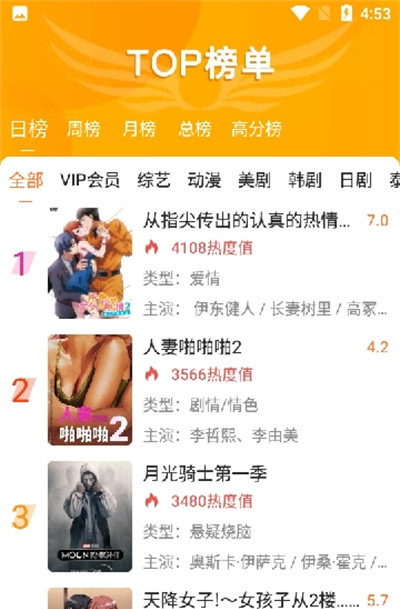 3、可以给大家喜欢的电影打分,每天热门榜都会根据你们的打分来更新。