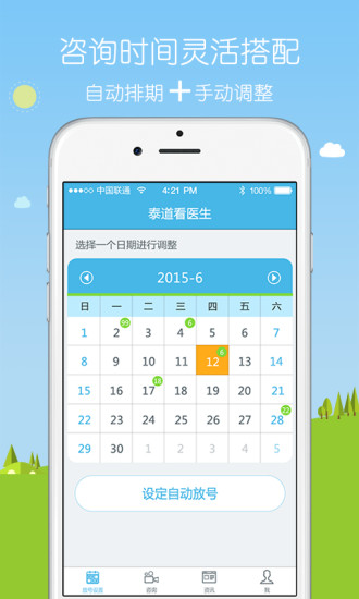 泰道看医生医生版,此版为医生专用版本,医生可以在这里分享和发送一些健康知识,咨询时间全由自己掌握和安排,及时回答患者的问题,还可以和其他医生交流互动,只需要利用闲暇时间就可以帮助更多的病人,同时还能增加自己的收入,欢迎大家下载体验!