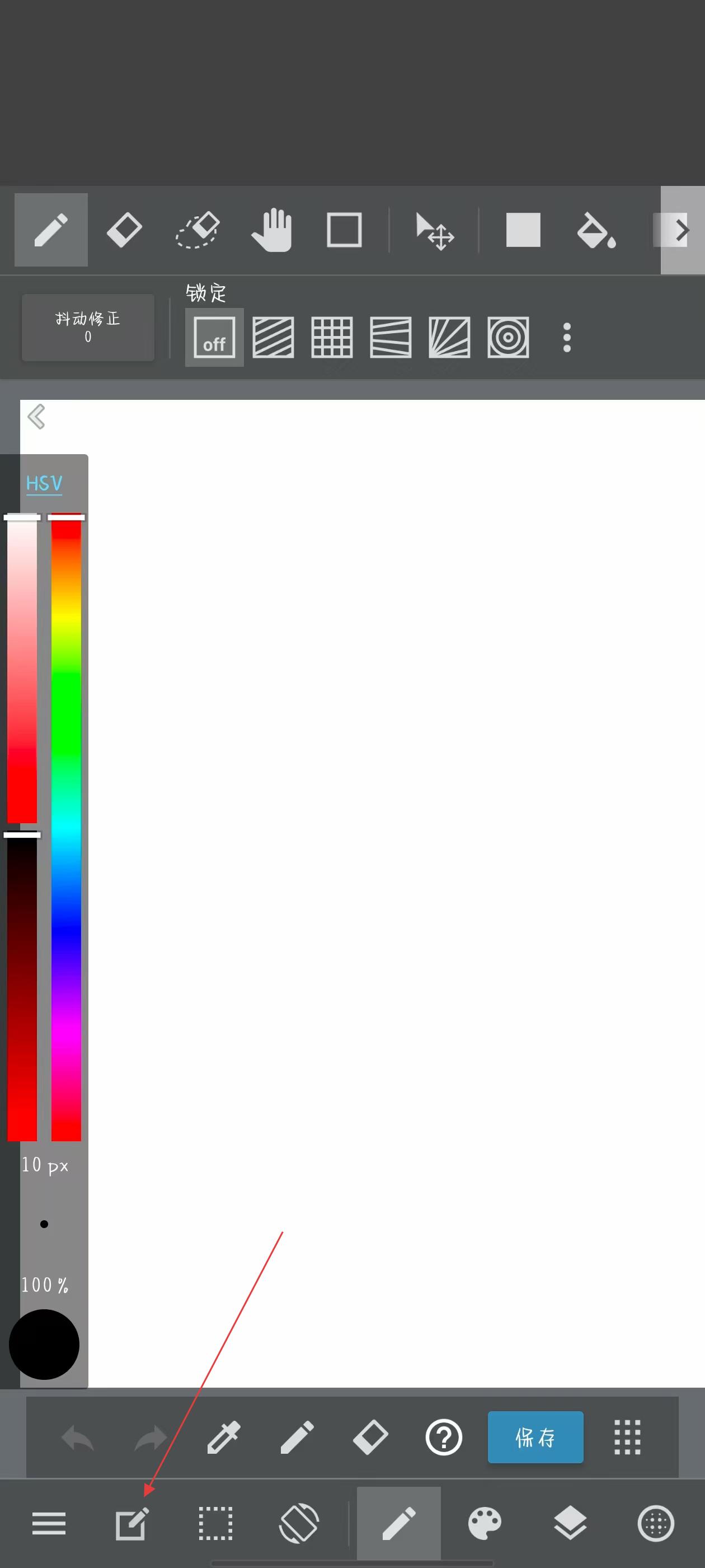 1、打开Medibang Paint应用,点击底部工具栏中带方框和铅笔的图标,弹出功能菜单。