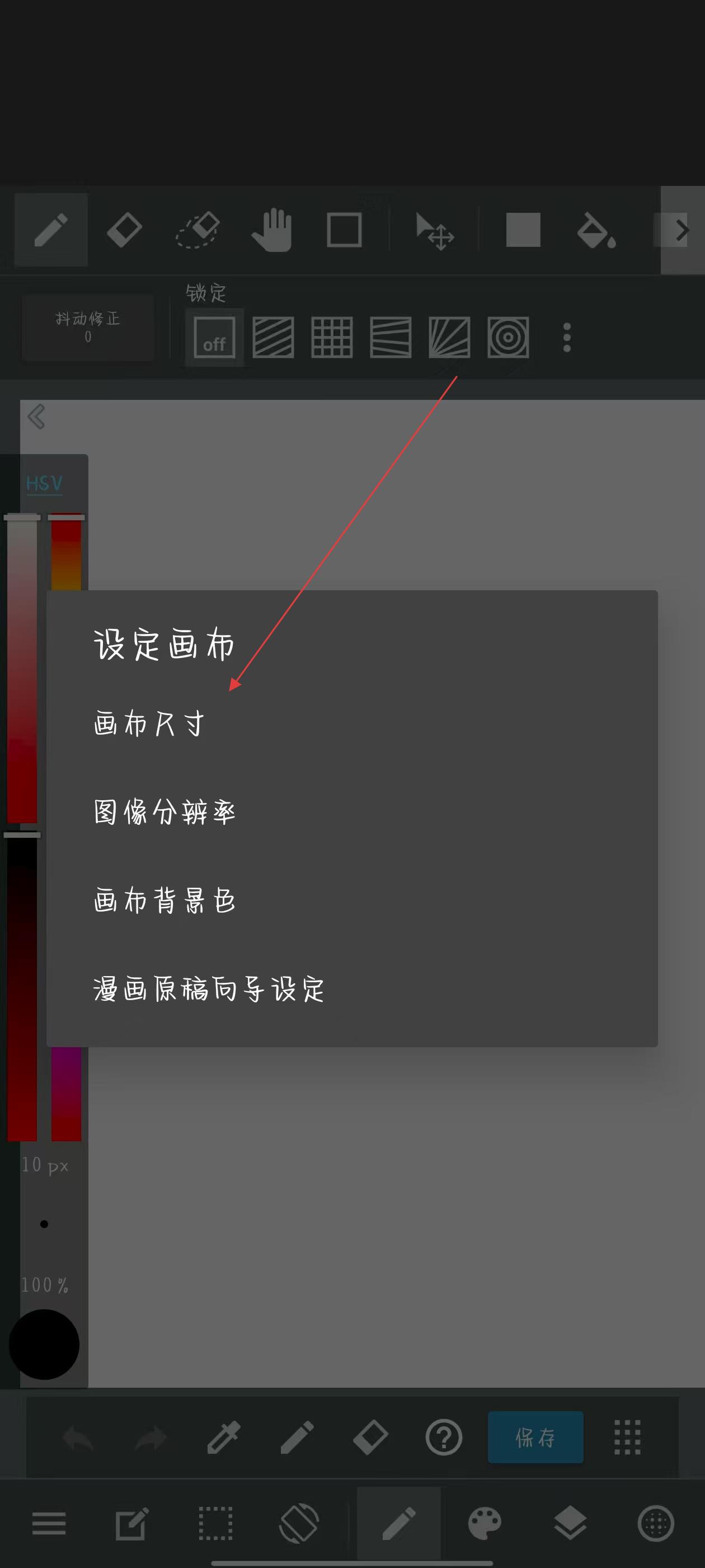3、在设定画布子菜单中选择画布尺寸,弹出画布尺寸设置窗口。