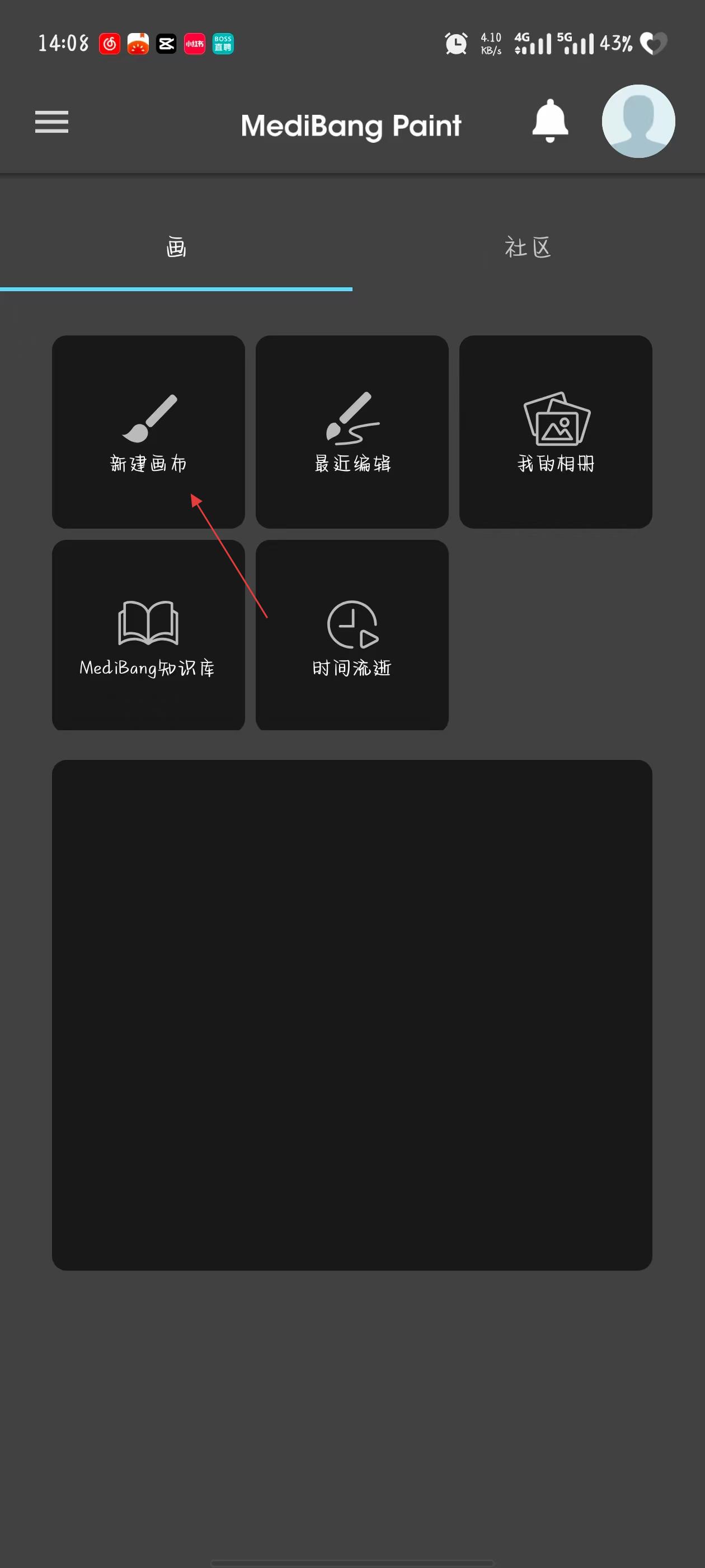 1、打开Medibang Paint应用,在主界面点击新建画布选项,进入新建画布设置页面。