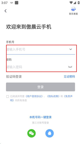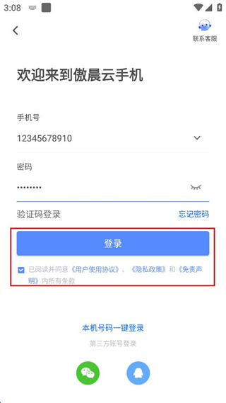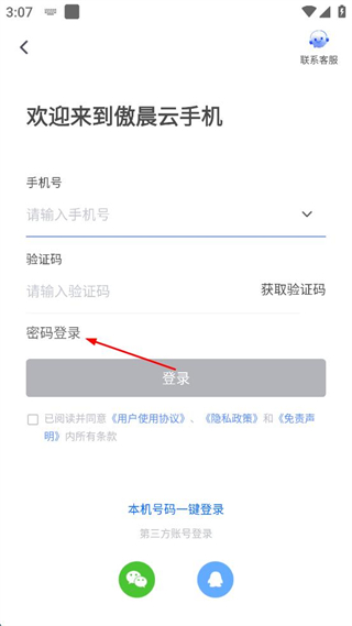 3、在密码登录界面,输入手机号和密码,勾选同意相关协议条款。