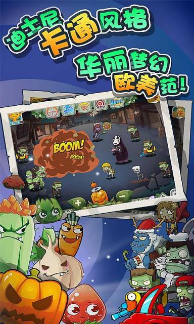 不一样的可爱视觉盛宴精致的萌系画风当道,数十种可爱萌僵尸BOSS和超另类植物武器,萌到没朋友,为您打造一种轻松惬意的基调;开着跑车的BOSS僵尸缓缓悠悠,背着“行囊”的神偷僵尸箭步如飞,还有已故的爱因斯坦僵尸,还能呼叫空袭;切换您手中的植物武器,大蒜植物,草莓植物,仙人掌植物,萝卜植物,西瓜植物,更有究极南瓜植物;给予他们致命一击,赚个盆丰钵满,快乐收益根本停不下来
