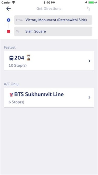 ViaBus软件是一款可以查询当地的交通工具的软件,能查询到每天到达泰国的飞机和每天具体的位置,还可以选择接机的车辆,让整个过程更加顺利,我们还可以看到当地车辆的具体发车时间,让自己能感受到最新的发车项目,我们还能看到更多有趣的项目,比如一些公交发车的间隔时间,能更好的到达车辆的站点。