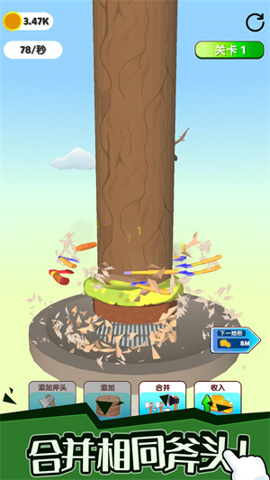 - 简单易上手:采用简单易懂的解压玩法,每个玩家都可以轻松尝试,无论是年轻还是老年,都能够享受到游戏的乐趣,游戏中的操作非常简单,只需要使用手指滑动即可完成木材切割。
