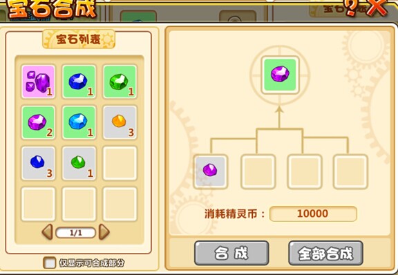 合成:在4399小小精灵合成中,需要相同的宝石4个和精灵币合成更高等级的宝石
