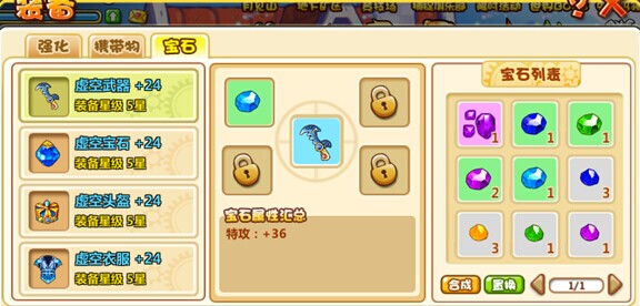 获取得到的宝石可以通过此处进行装备,默认开1个孔,其余孔需要消耗物品才能开启