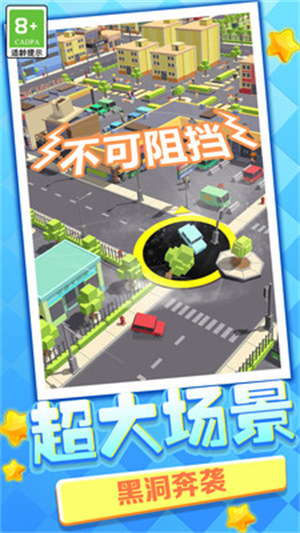 1、简单易上手:操作简单,只需滑动屏幕即可,但同样也需要玩家考虑各种因素,如黑洞大小、吞噬物体的顺序等,才能取得更高的分数。