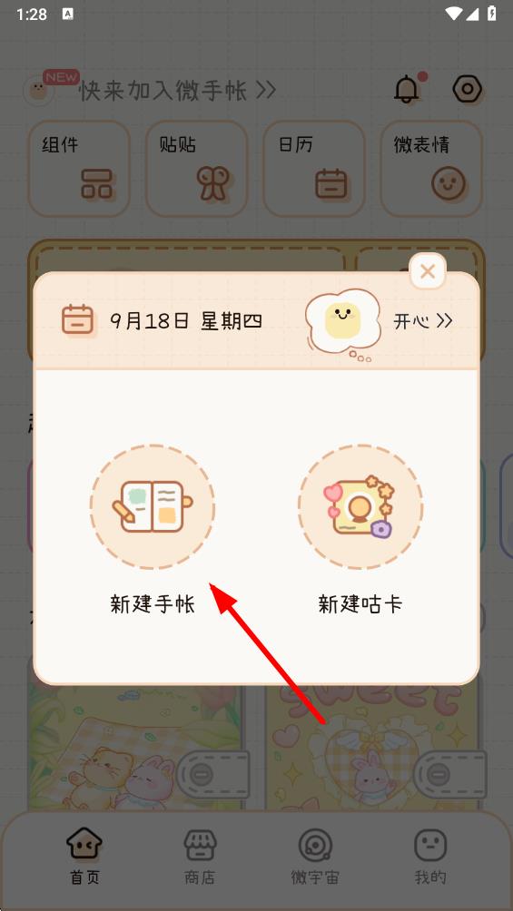 2、在弹出的选项中,选择新建手帐进入手帐编辑界面。