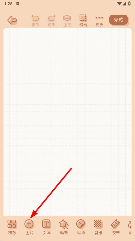 3、在手帐编辑界面,点击底部工具栏中的图片图标。