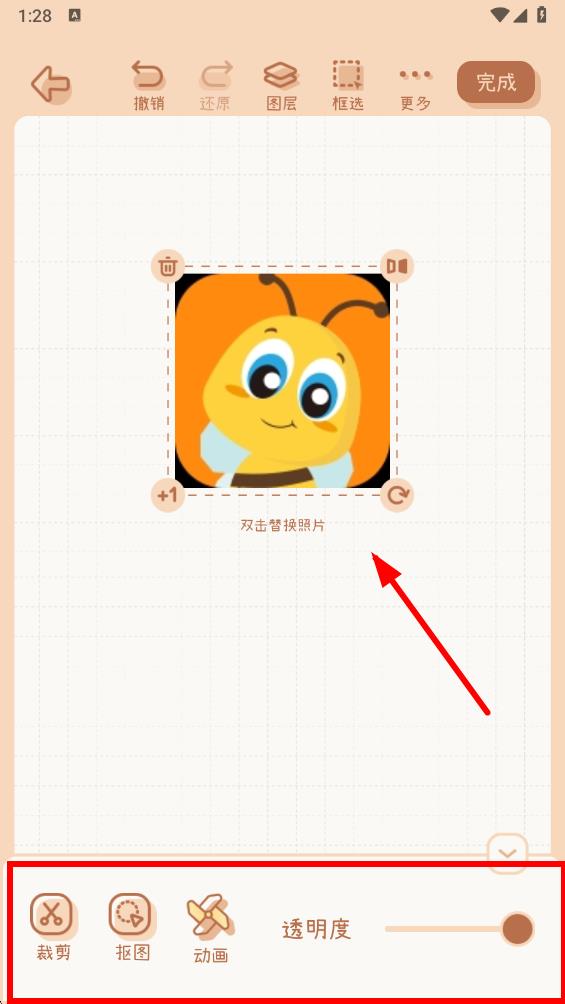 5、添加到编辑区的图片可进行裁剪、抠图、设置动画、调整透明度等操作。