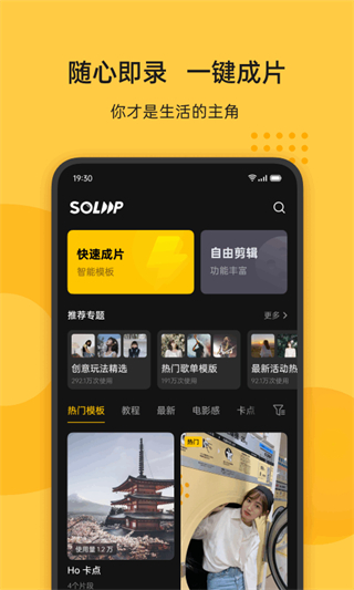 2、软件也提供大量的推荐模板,涵盖生活、自拍和搞笑等热门题材。