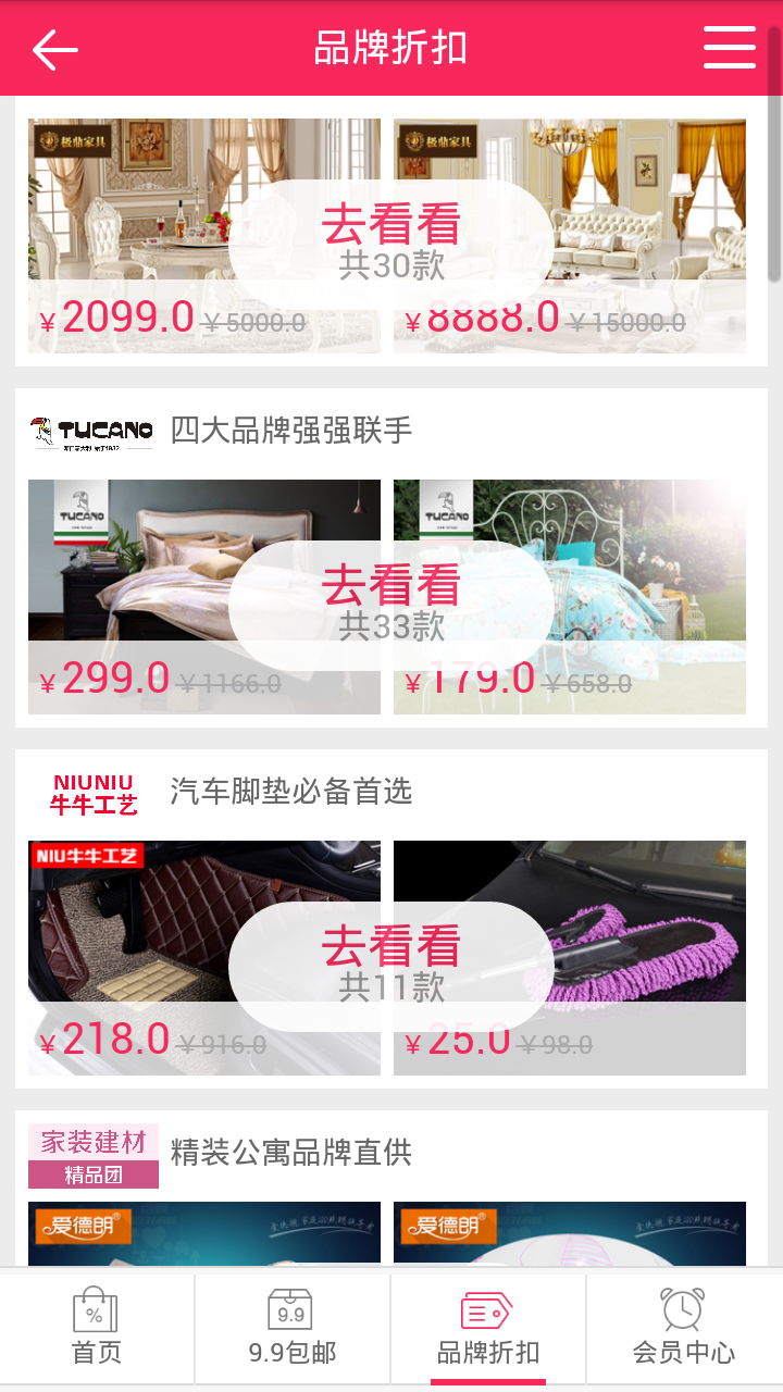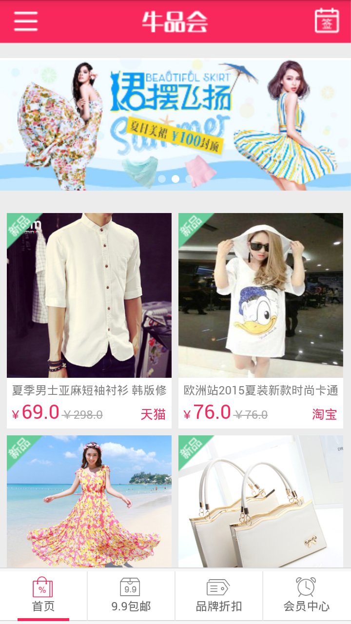 牛品会是一款特价购物商城,买的实惠用的放心,100%的正品保障,专注于精选独家折扣、打折商品、天猫品牌折扣、9.9包邮、美丽说折扣商品,海量优质商品每天更新,让用户可以用低廉的价格买到优质的商品。