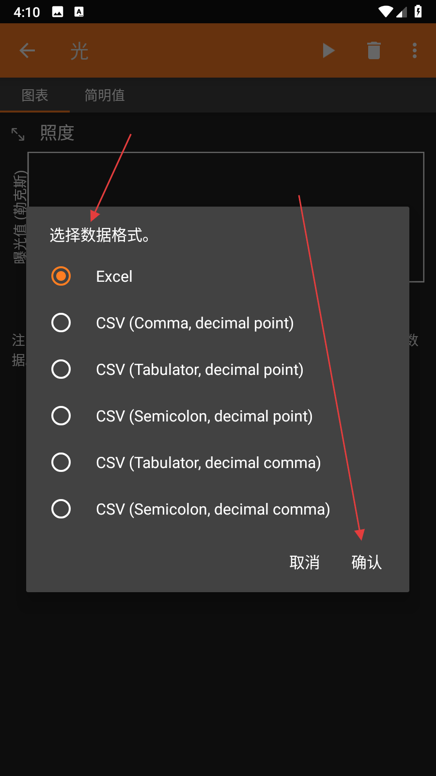 4、在数据格式选择窗口中,选择需要的格式,然后点击确认按钮,即可完成数据导出。