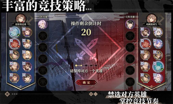 3、游戏里丰富的竞技策略,游戏机制禁止玩家选择使用对方的英雄,提升了游戏的可玩性。