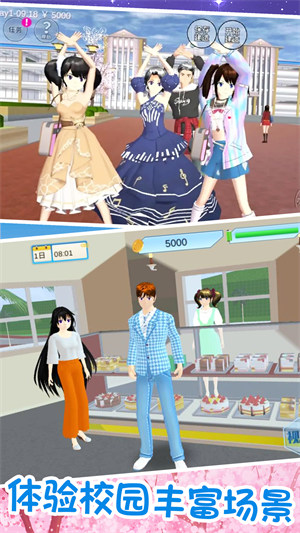 各种不同的场景,包括樱花校园、咖啡厅、游乐园、海边等,每个场景都有不同的特色和活动,玩家可以在其中探索和发现许多有趣的事物和惊喜。