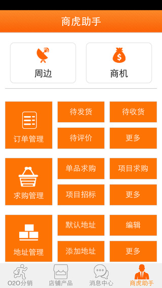 寻找身边的商机网店+分销+办公(全方位的为广大企业提供多样化的服务)商虎O2O分销助您最高效率、最低成本的快速拥有网络分销能力,从创建网上商铺、分销管理到下属管理,全面解决企业的核心运营问题,并且设立多级分销价体系,利润抽成结算体系。