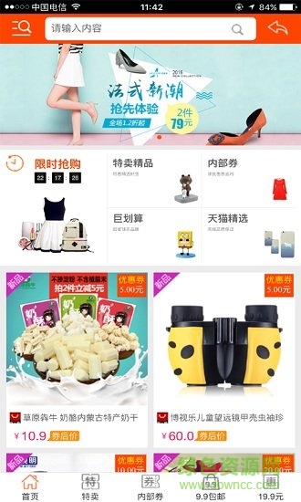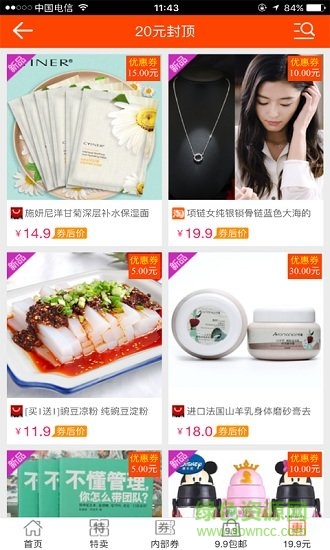 4、每天更新上百款带有内部优惠券的商品,数量多,产品全,优惠券天天送!先领券,再下单,比别人少花钱!淘宝省钱购物app必备软件!