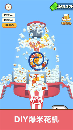 崩爆米花手游是一款放置挂机游戏,玩家可以通过升级和DIY自己的爆米花机器来实现自动生产爆米花,从而获得收益,同时,玩家也可以智慧地管理资源、优化销售策略,提高收益效率,探索不同的机器组合和升级路径,成为爆米花产业的巨头。