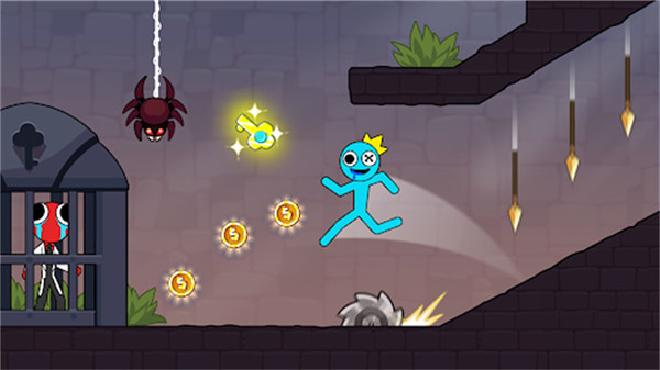 关卡设计非常有趣,每一个关卡都有自己的特色,从茂密的森林到危机四伏的山洞,每个场景的设计都充满了挑战和乐趣,此外,游戏中还有各种陷阱和过关方法,让玩家在不断的探索和挑战中收获成长和进步。