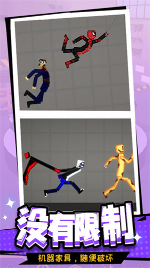 另一个亮点在于它可以充分发挥玩家的创造力,玩家可以根据自己的想象和创意,创造各种奇特的机械和构造,将豆腐块、木板等组合在一起,与火柴人们进行有趣的实验。