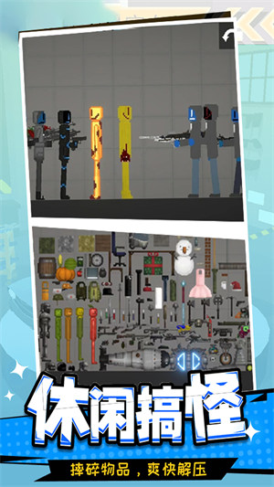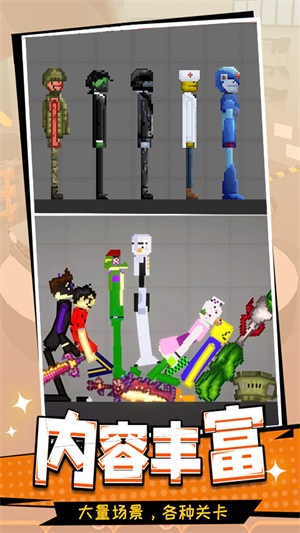 世界沙盒乐园最新版是一款动作主题游戏,这款游戏的主要特点是能够进行各种各样的尝试,玩家可以进行汽化或压碎布娃娃等操作,让你充分发挥自己的创造力和想象力,此外,由于游戏采用了物理引擎,玩家也可以发挥聪明才智,制作各种机械,用各种奇怪又有趣的方对火柴人进行各种测试。