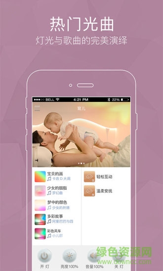 igoo育儿app是针对该品牌智能灯设计的一款远程控制软件,使用该软件可以全面的查看灯的状态,远程控制方便快捷,提供音乐互动玩法,育儿更智能更有趣,欢迎来绿色资源网下载!