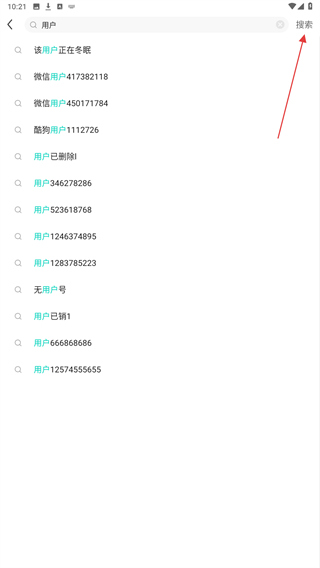 3、页面加载出与关键词匹配的用户列表,可看到目标用户。