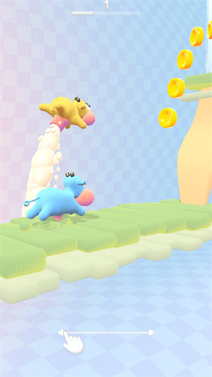 一起往前冲手机版是一款休闲益智主题的游戏,玩家在游戏中将会扮演一个小奶牛,这个奶牛可以自己乘坐拍摄的机器在空中进行飞行,玩家可以自己的控制飞行的速度以及方向,自由度相对较高。